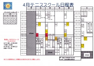 4月 スクール日程表