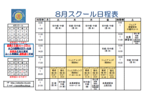 8月 スクール日程表