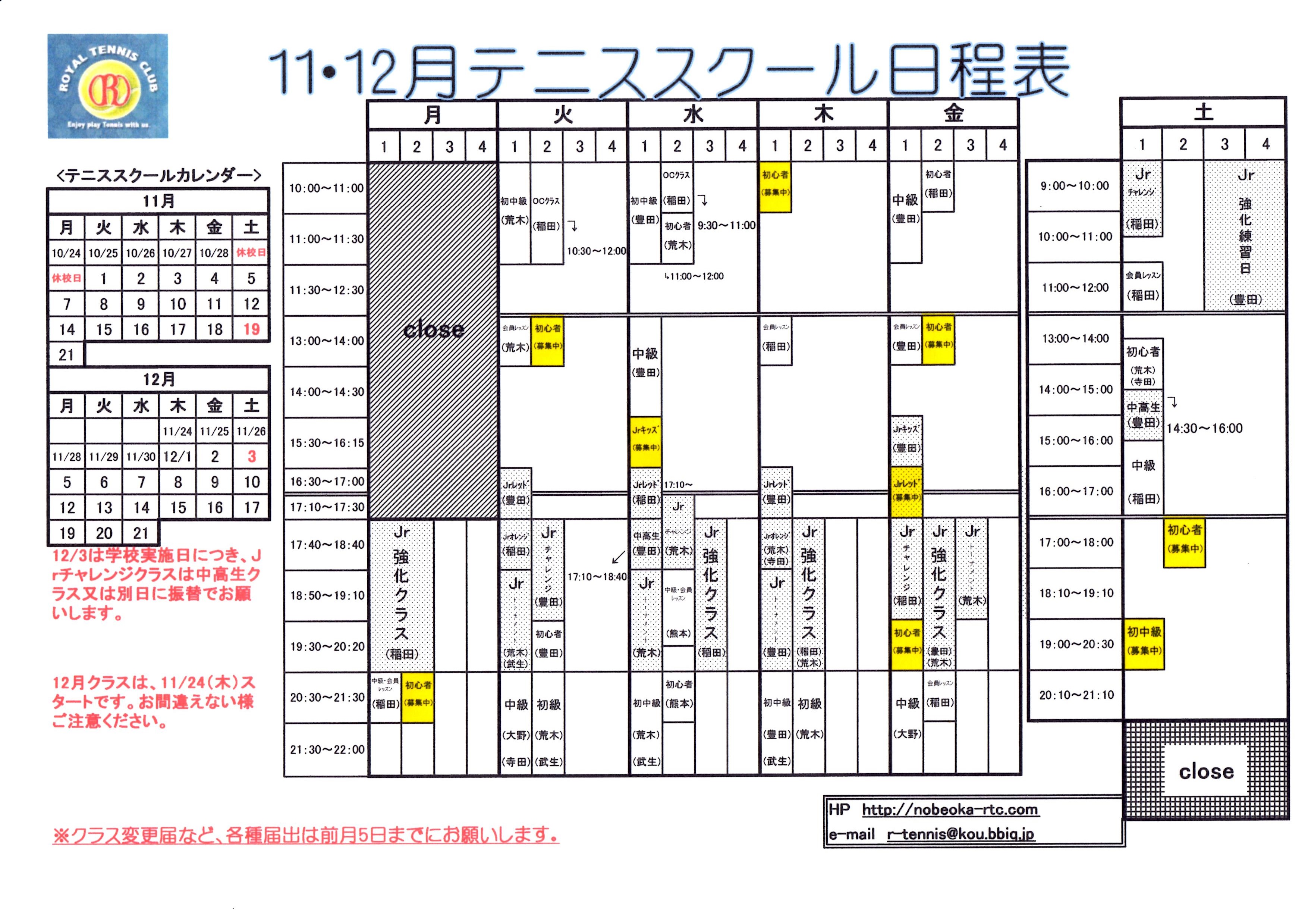 11.12月 スクール日程