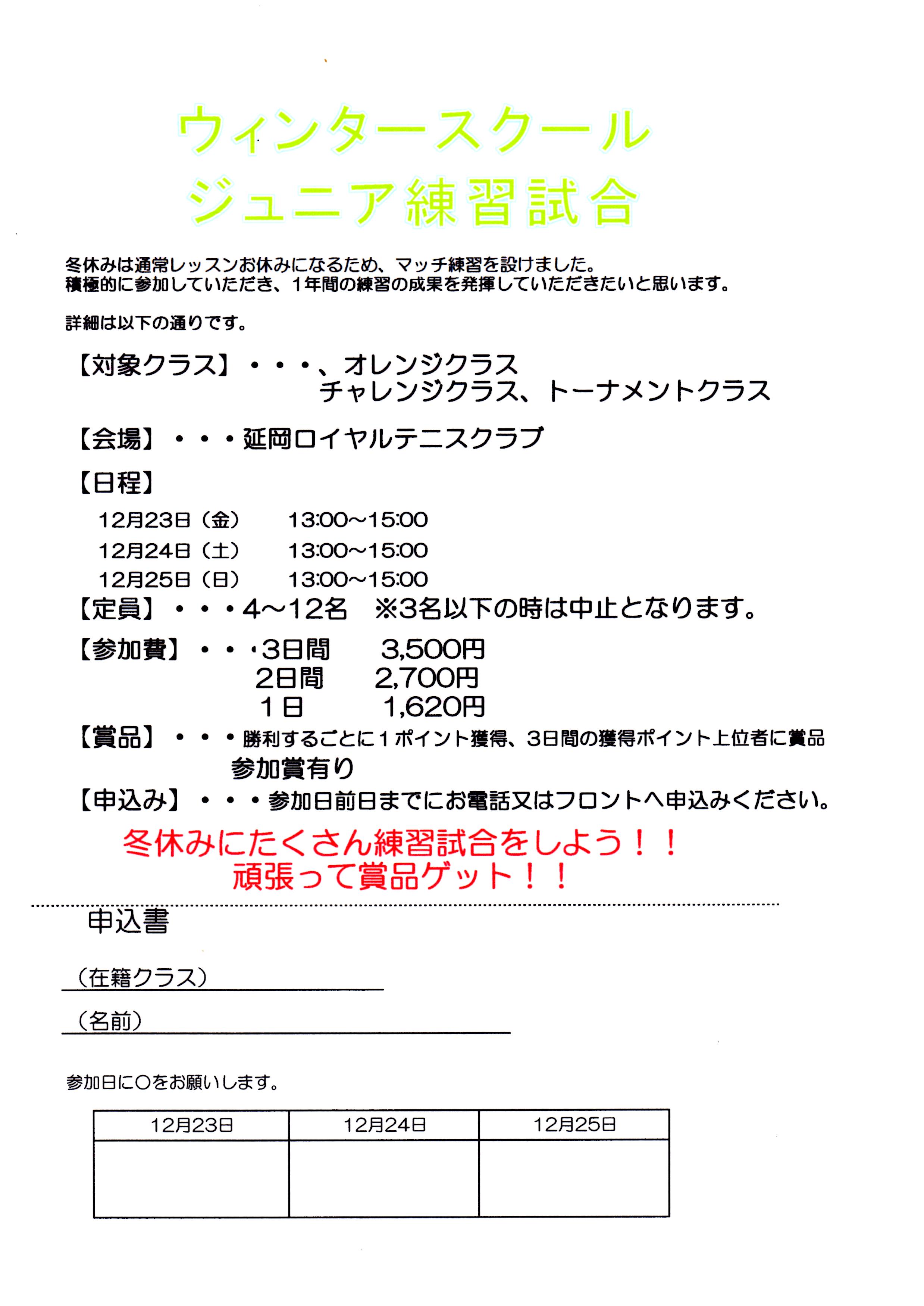 Warning: Undefined variable $fa_family in /home/xs672917/miyazaki.live/public_html/renewal.miyazaki.live/wp-content/plugins/vk-blocks-pro/inc/vk-blocks/font-awesome/font-awesome-config.php on line 63 Jrウィンタースクール 参加者募集中!! | 延岡ロイヤルテニスクラブコンテンツへスキップナビゲーションに移動