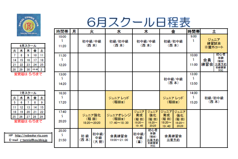 6月 スクール日程表