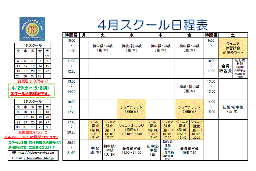 4月 スクール日程表