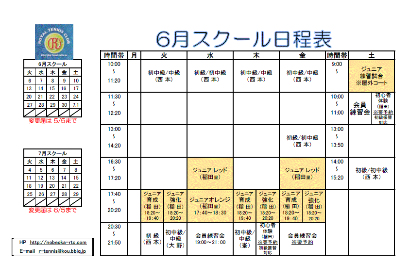 6月 スクール日程表